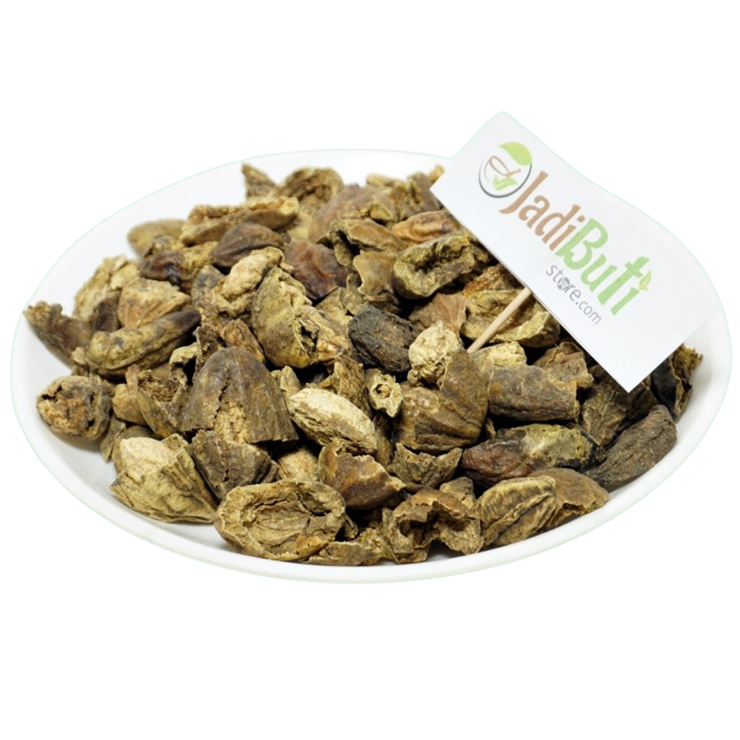 Yellow haritaki, also known as Terminalia chebula or Harad, is a tree native to Southeast Asia and is widely used in Ayurveda for its medicinal properties. The pods of the yellow haritaki fruit are also used in Ayurvedic medicine and are believed to have several health benefits.